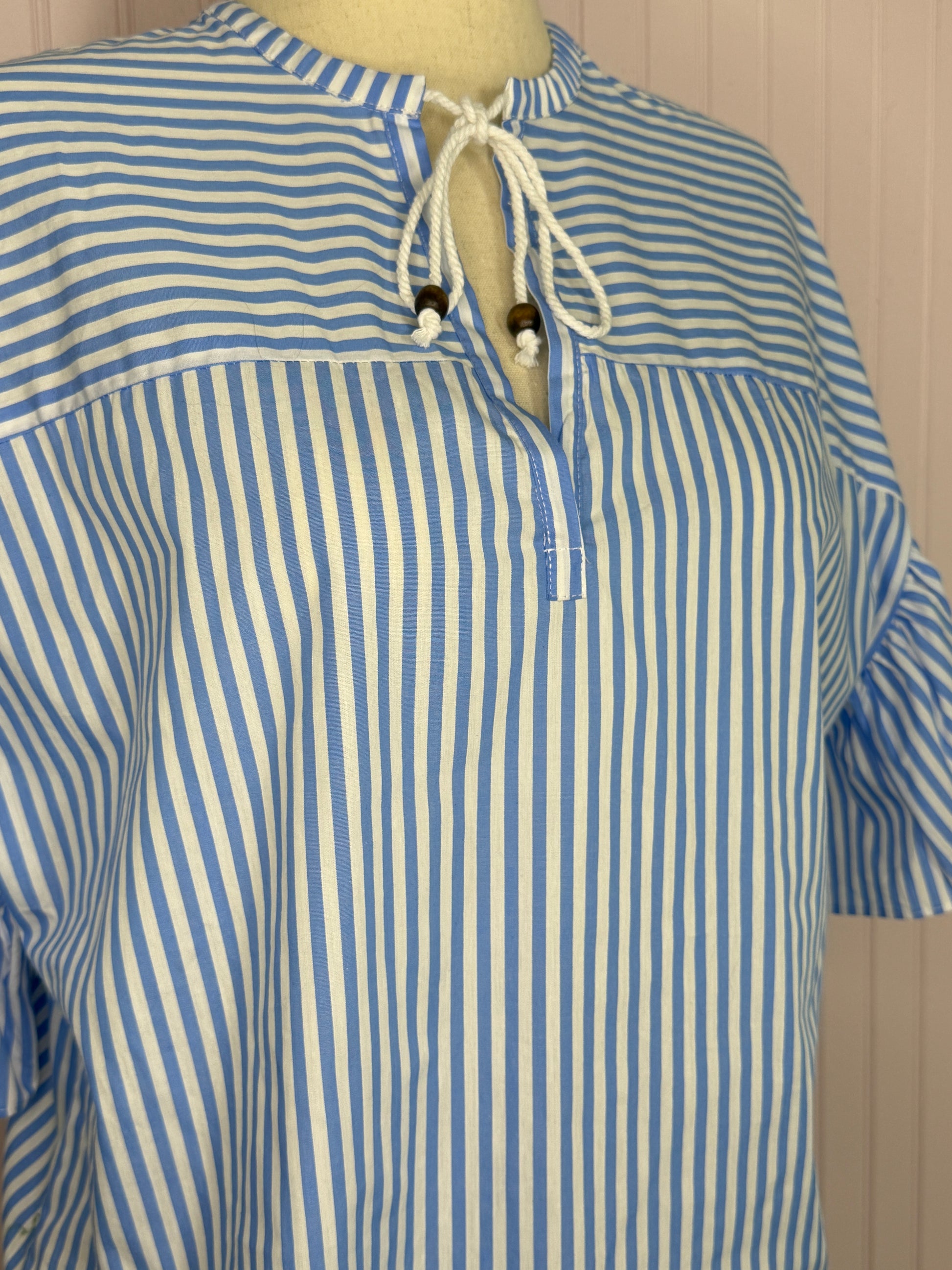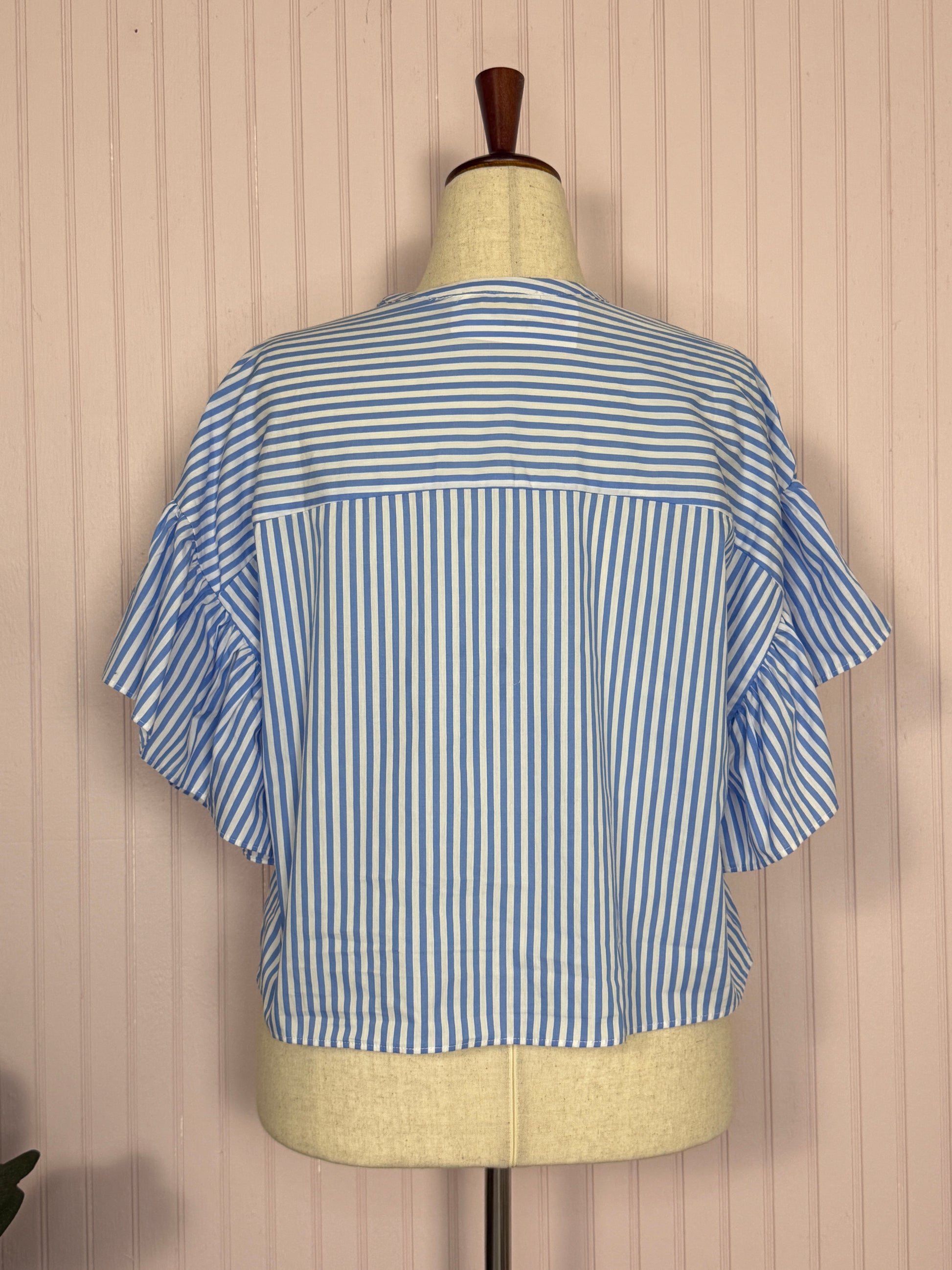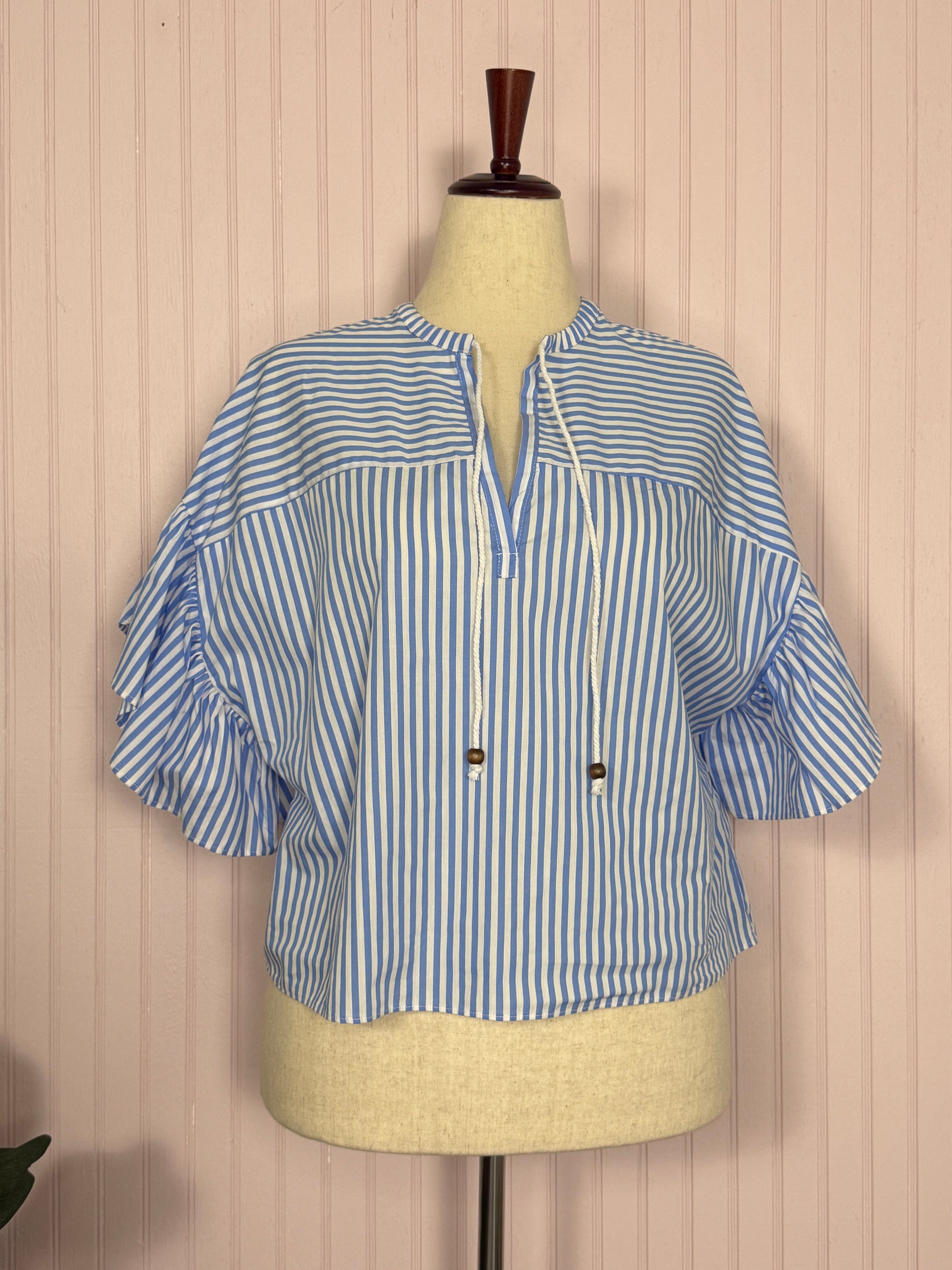 Hillside Blue Ruffle Top - perfect for high rise jeans, 100% Cotton